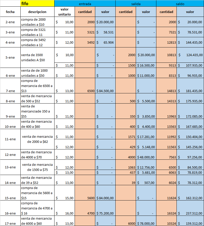EJERCICIO VALUACION DE INVENTARIO (FIFO) BASICO